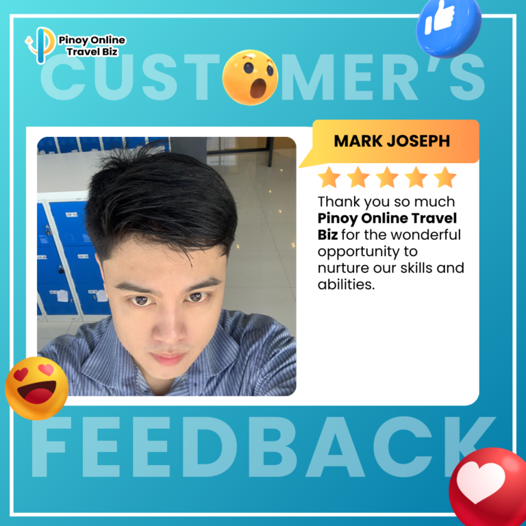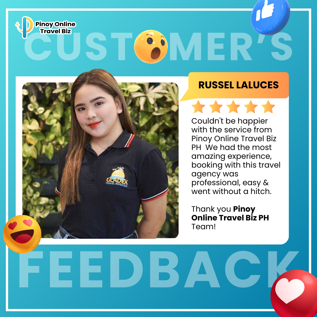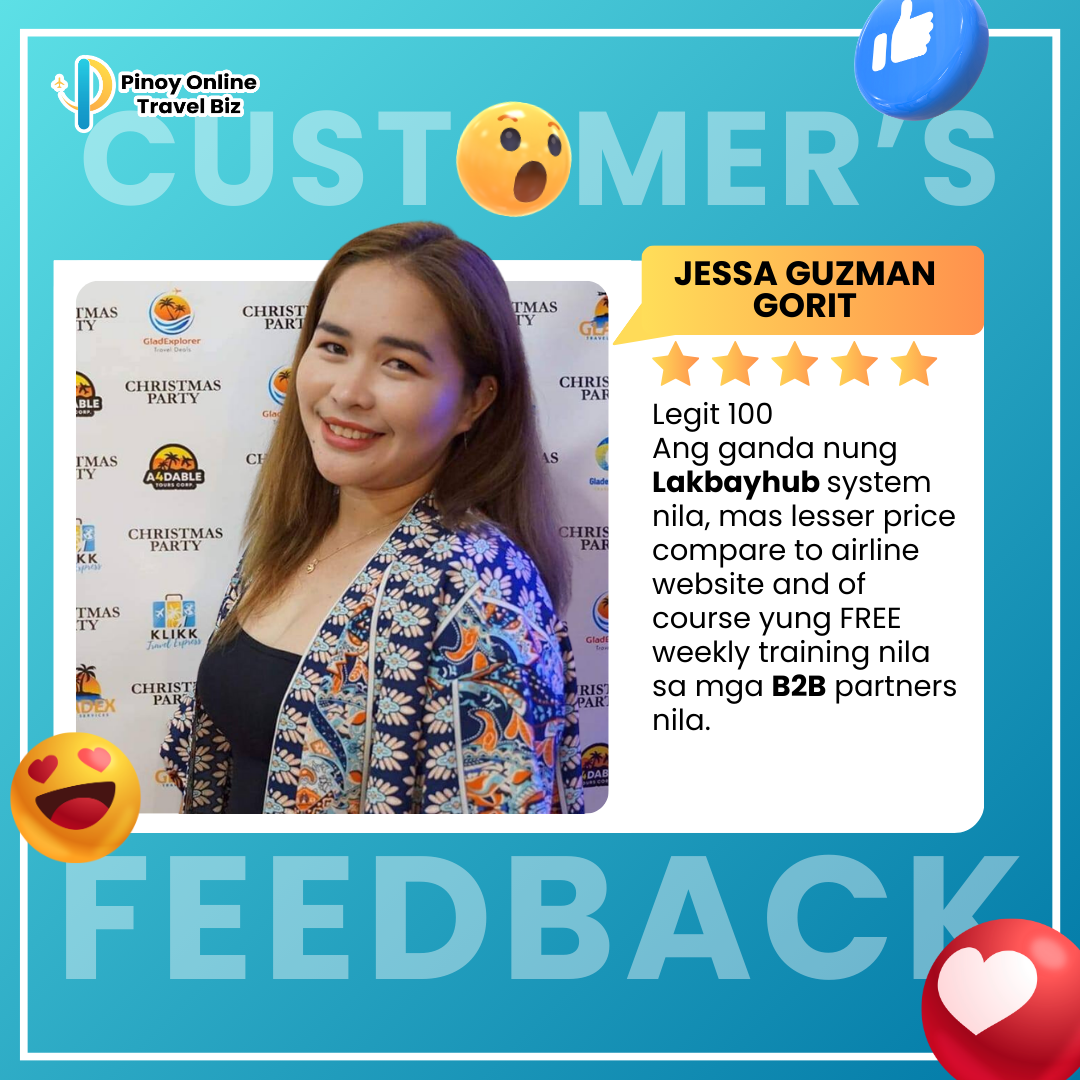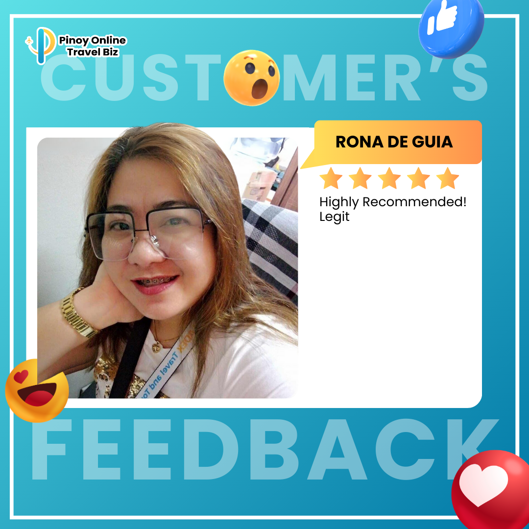 Earnings and income representations by Glady Ann Bolasa and Pinoy Online Travel Biz are aspirational statements only of your earnings potential. The success of Glady Ann Bolasa and Pinoy Online Travel Biz, testimonials, and other examples used are exceptional, non-typical results and are not intended to be and are not a guarantee that you or others will achieve the same results. Individual results will always vary, and yours will depend entirely on your capacity, work ethic, business skills, experience, level of motivation, diligence in applying Glady Ann Bolasa and Pinoy Online Travel Biz programs, the economy, the normal and unforeseen risks of doing business, and other factors. Glady Ann Bolasa and Pinoy Online Travel Biz are not responsible for your actions. You are solely responsible for your moves and decisions, and the evaluation and use of our products and services should be based on your due diligence. You agree that Glady Ann Bolasa and Pinoy Online Travel Biz are not liable for your results in using our products and services. See our Terms & Conditions for our full disclaimer of liability and other restrictions. Glady Ann Bolasa and Pinoy Online Travel Biz, including Glady Ann Bolasa personally, may receive compensation for products and services they recommend to you. Unless it states otherwise, Glady Ann Bolasa and Pinoy Online Travel Biz use a recommended resource. Suppose you do not want this site or Glady Ann Bolasa and Pinoy Online Travel Biz personally to be compensated for a recommendation. In that case, we advise that you search online for the item through a non-affiliate link. Sellnamics created this website for .Glady Ann Bolasa All rights reserved. Do not copy, or reproduce any part of this website. All infringements will be prosecuted. This website is created using Sellnamics The All-In-One Platform To Launch, Grow & Automate Your Business.