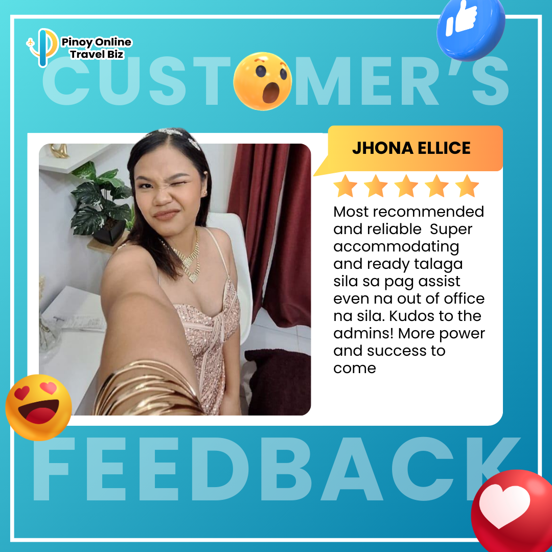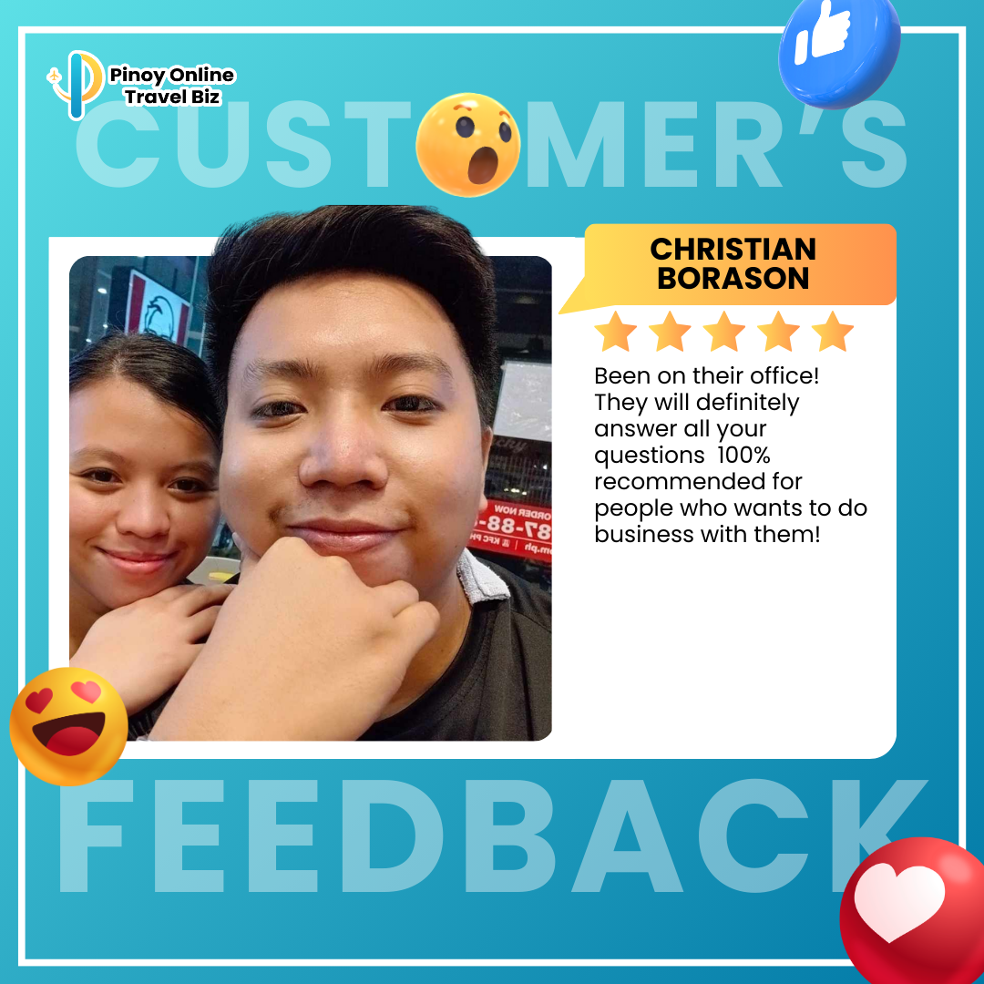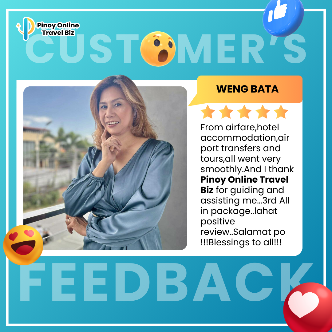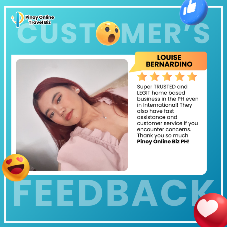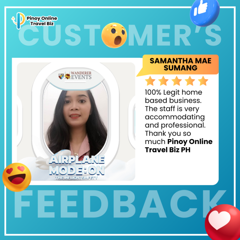 Earnings and income representations by Glady Ann Bolasa and Pinoy Online Travel Biz are aspirational statements only of your earnings potential. The success of Glady Ann Bolasa and Pinoy Online Travel Biz, testimonials, and other examples used are exceptional, non-typical results and are not intended to be and are not a guarantee that you or others will achieve the same results. Individual results will always vary, and yours will depend entirely on your capacity, work ethic, business skills, experience, level of motivation, diligence in applying Glady Ann Bolasa and Pinoy Online Travel Biz programs, the economy, the normal and unforeseen risks of doing business, and other factors. Glady Ann Bolasa and Pinoy Online Travel Biz are not responsible for your actions. You are solely responsible for your moves and decisions, and the evaluation and use of our products and services should be based on your due diligence. You agree that Glady Ann Bolasa and Pinoy Online Travel Biz are not liable for your results in using our products and services. See our Terms & Conditions for our full disclaimer of liability and other restrictions. Glady Ann Bolasa and Pinoy Online Travel Biz, including Glady Ann Bolasa personally, may receive compensation for products and services they recommend to you. Unless it states otherwise, Glady Ann Bolasa and Pinoy Online Travel Biz use a recommended resource. Suppose you do not want this site or Glady Ann Bolasa and Pinoy Online Travel Biz personally to be compensated for a recommendation. In that case, we advise that you search online for the item through a non-affiliate link. Sellnamics created this website for .Glady Ann Bolasa All rights reserved. Do not copy, or reproduce any part of this website. All infringements will be prosecuted. This website is created using Sellnamics The All-In-One Platform To Launch, Grow & Automate Your Business.